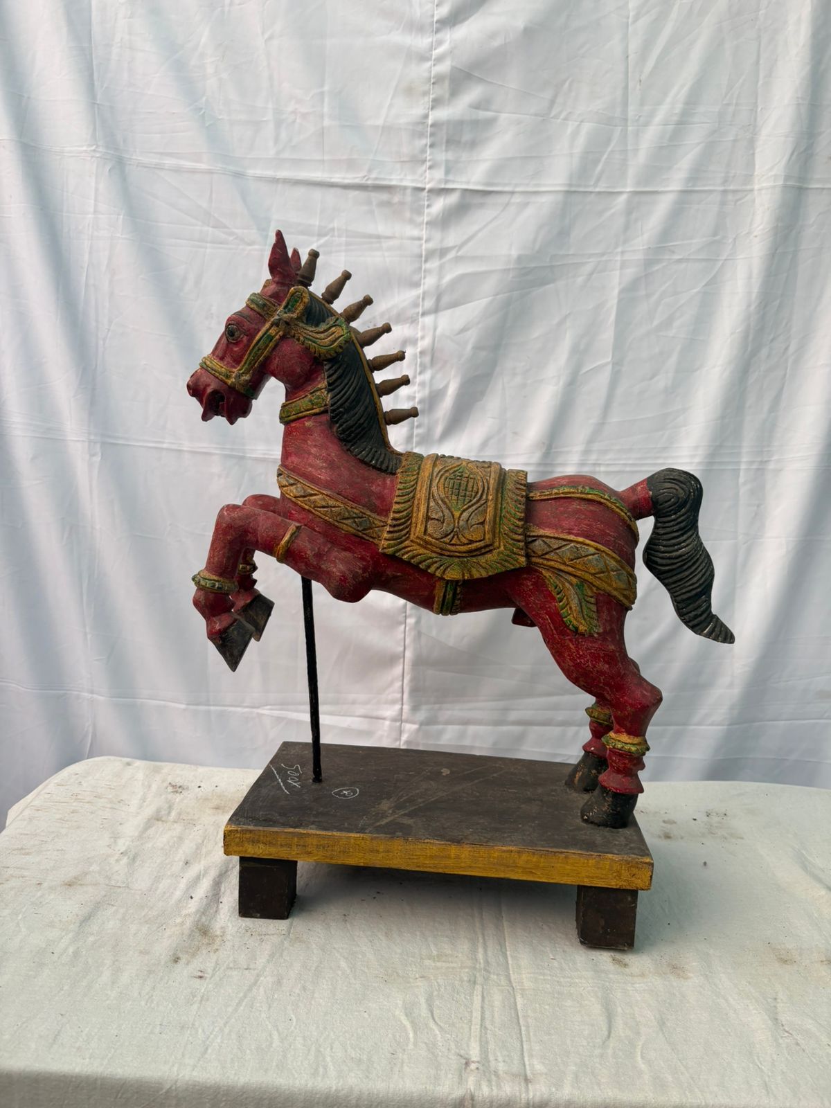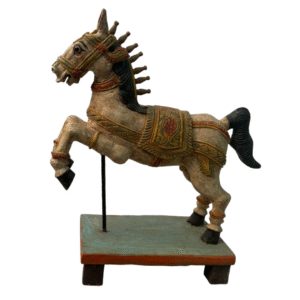 Ideal for temples, pooja rooms, heritage interiors, or as a valued collector’s piece, this wooden Horse Vahanam adds a calm yet powerful aura to any space. It stands as a testament to India’s traditional woodcraft and spiritual heritage, preserved through generations.